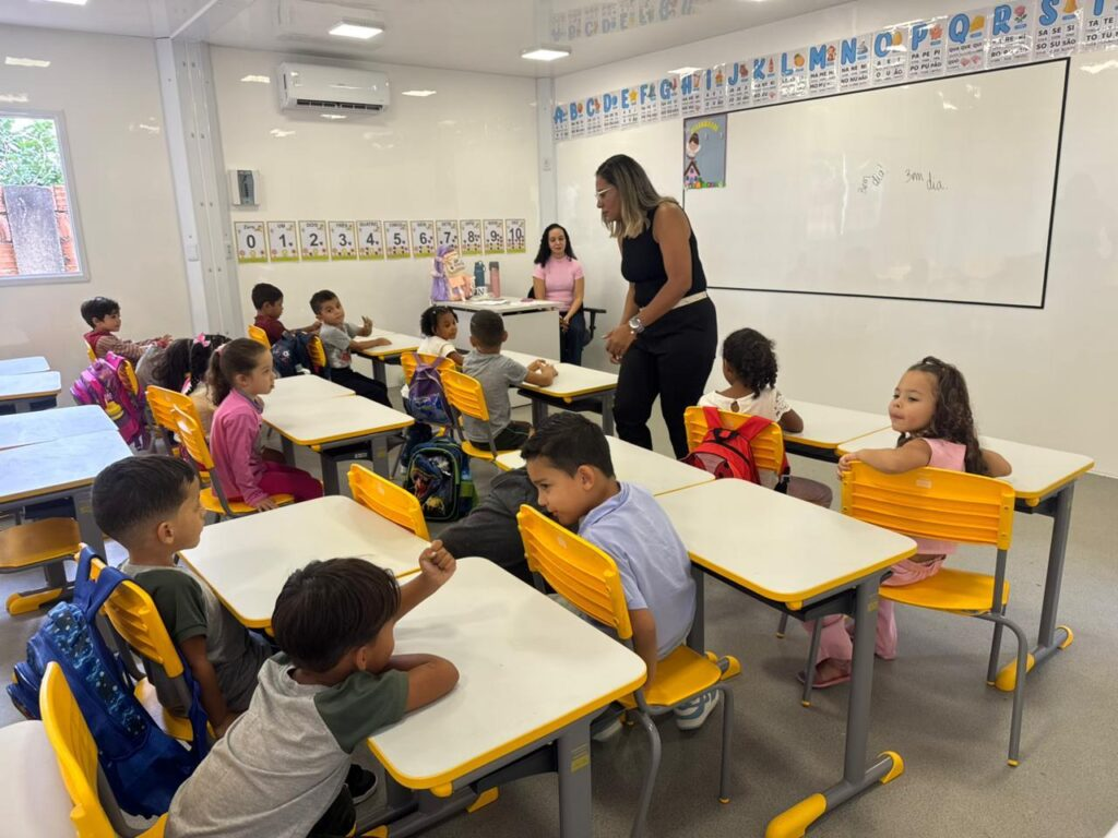 A implantação de salas modulares climatizadas foi um dos grandes destaques do mês, permitindo a ampliação da capacidade de atendimento da rede municipal em mais de mil novas vagas.