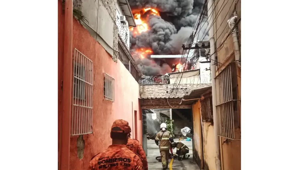 Incêndio de grandes proporções atinge galpão no Rio
